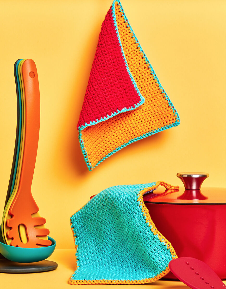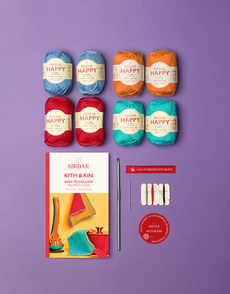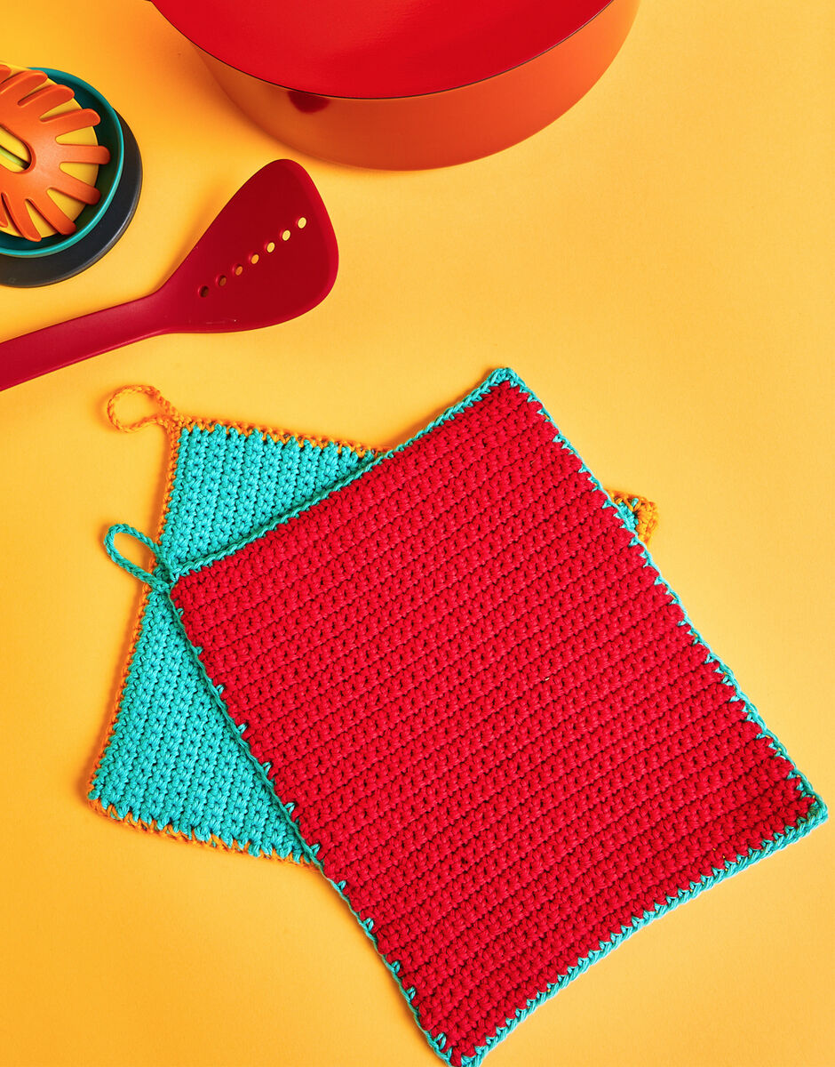 Add a bold pop of colour to your kitchen with these easy to make crochet pot holders. Designed especially for beginners, this crochet kit includes everything you need to start your crochet journey with a fun simple project.