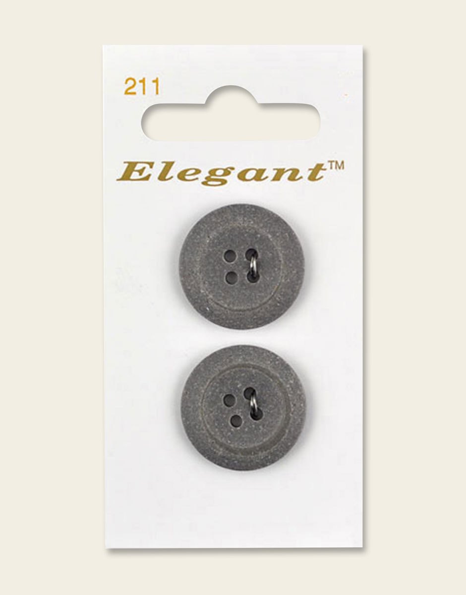 Single card of 2 x Grey 4-Hole 22mm buttons