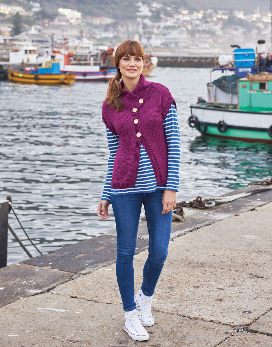 Knit this Women's Jacket featuring large buttons, with or without sleeves. Designed to be knitted in a Sirdar No1 Chunky which has a beautiful sheen and...