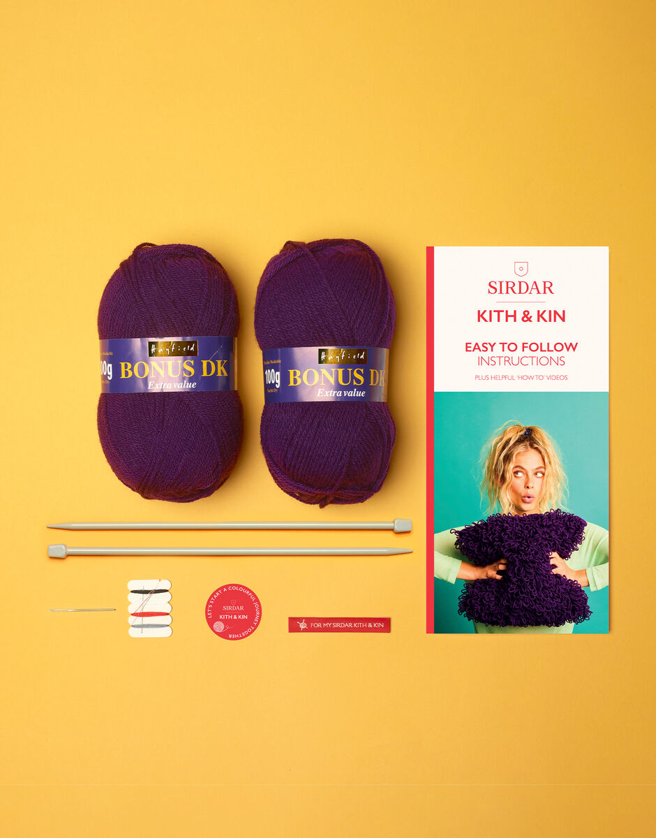 It’s surprisingly easy to learn the loopy stitch that makes this cushion cover such a stunning sofa statement. Designed especially for beginners, this knitting kit includes everything you need to start your knitting journey with a fun simple project.