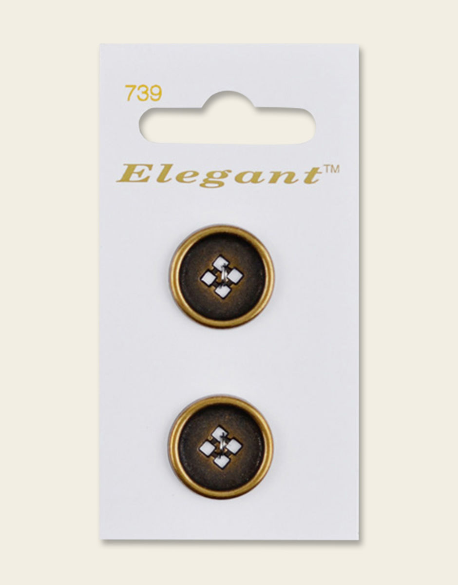 Single card of 2 x Gold 4-Hole 19mm buttons