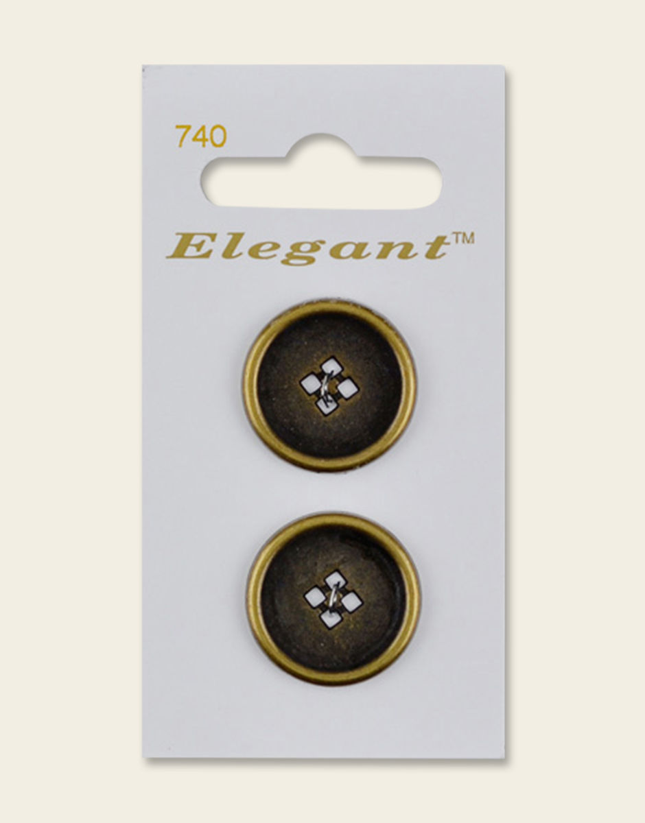 Single card of 2 x Gold 4-Hole 22mm buttons