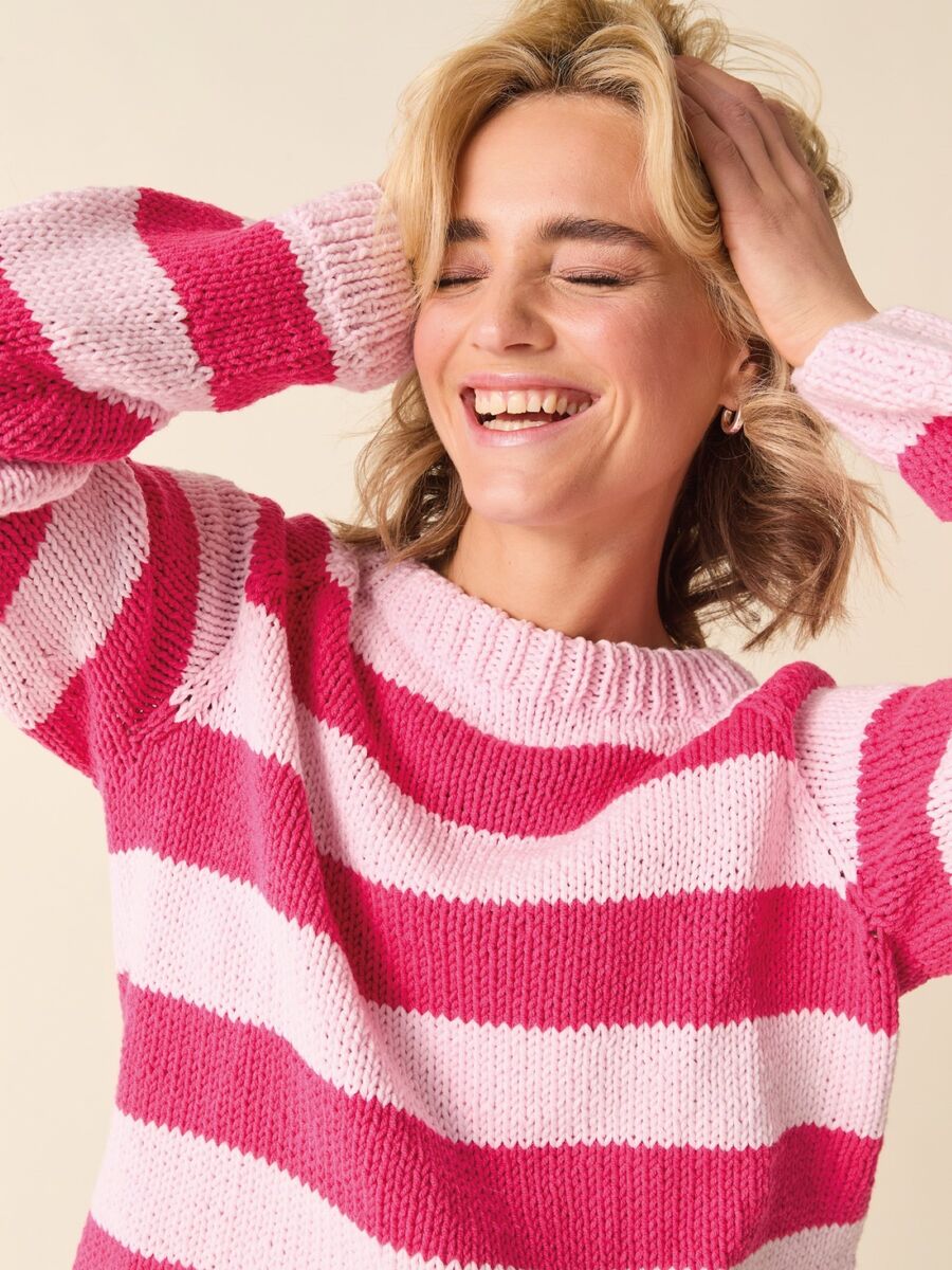If you’re a fan of knitting in-the-round (or not a fan of sewing-up), we think you’ll love this striped sweater pattern. Worked from the bottom-up in fashionable Sirdar Stories Chunky, raglan sleeves create a continuous square stripe around the yoke.