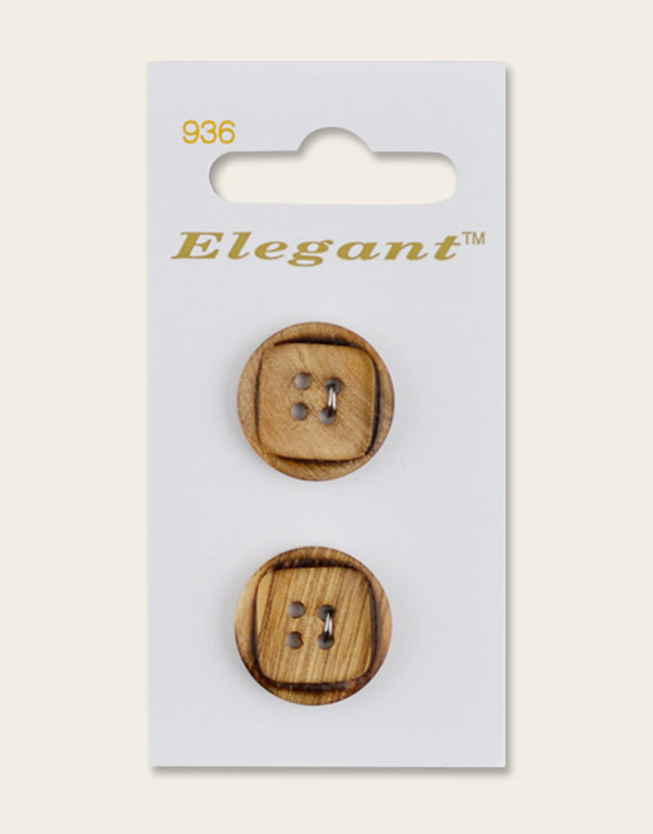 WOOD SQUARE RIM ROUND 19MM BUTTONS X 2