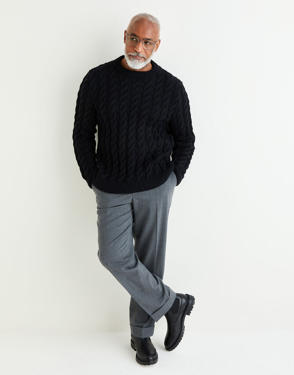 Definitely our favourite design from our Menswear Capsule collection. This traditional Aran style Cable sweater, in Country Classic Worsted, is the perfect combination of yarn weight and stitch for the coldest months. The pattern features an eight-stitch cable on reverse stocking stitch and a cosy tubular rib neckline for a smart finish. You'll find all ten patterns from this collection in one beautiful Men's Capsule Collection book we think you'll return to every knitting season.