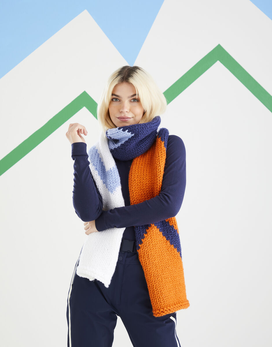 Inspired by the snowy slopes of the Alps, this knitting pattern includes two scarf designs, a simpler one ideal if you're new to using intarsia to join...