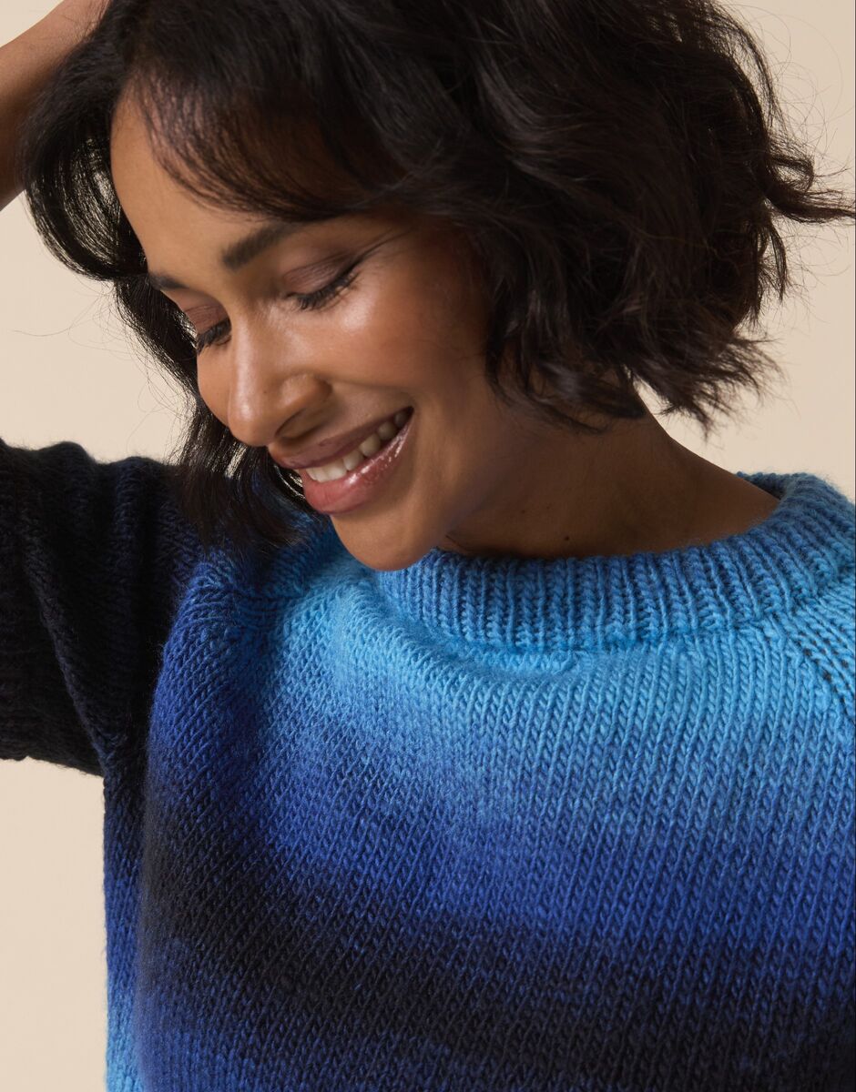 Aran-weight, machine-washable Jewelspun Ombre creates a lightweight fabric with a gorgeous drape, perfect for year-round knitwear. With closer stitches, Jewelspun Ombre can also be used to knit or crochet a denser fabric, ideal for bags and accessories.