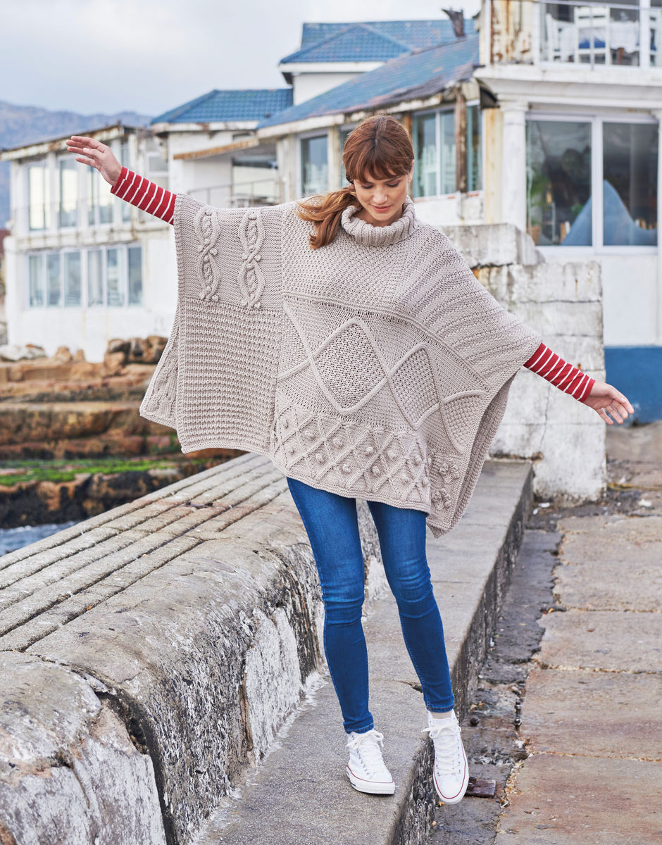 This stylish poncho features a patchwork of stitches for a cosy cover-up with fabulous drape that will showcase your knitting skills. Designed to be knit in Sirdar No1 Chunky which has the same gentle sheen as the original and popular No1 DK.