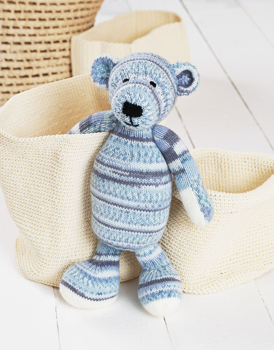 Toy bear design in Snuggly Crofter DK, a gorgeously soft self-patterning fair isle effect yarn which means no two knits will be the same. Snuggly Crofter retains its softness through washing and tumble drying.