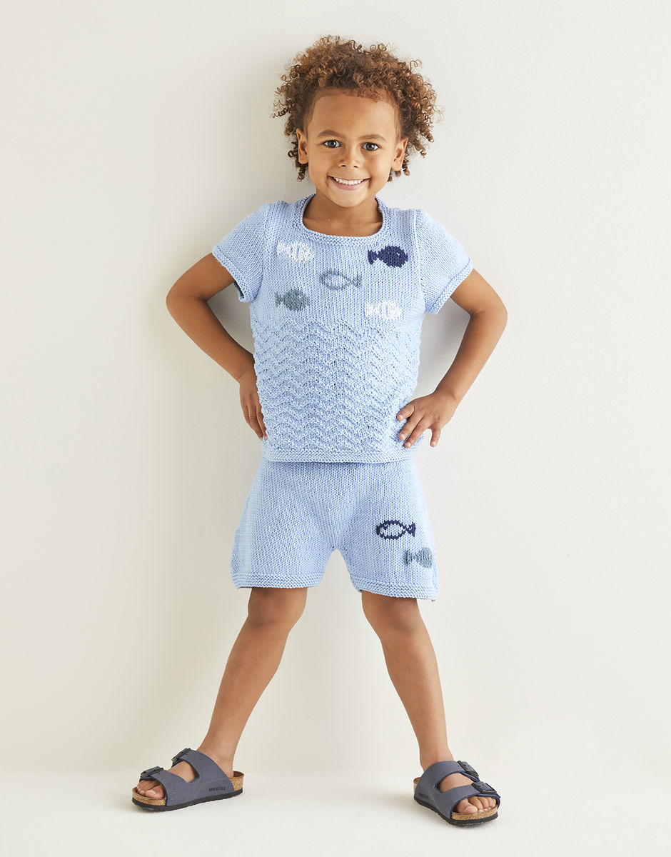 UNDER THE SEA TOP & SHORTS IN SNUGGLY 100% COTTON DK