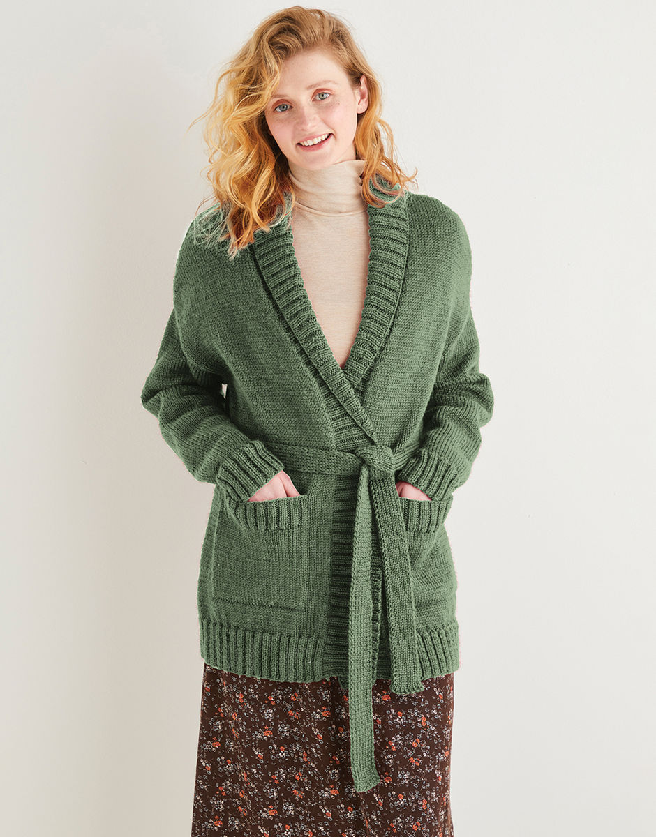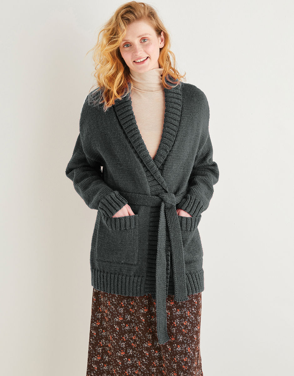WOMEN’S DEEP RIB WRAP CARDIGAN IN SIRDAR COUNTRY CLASSIC WORSTED