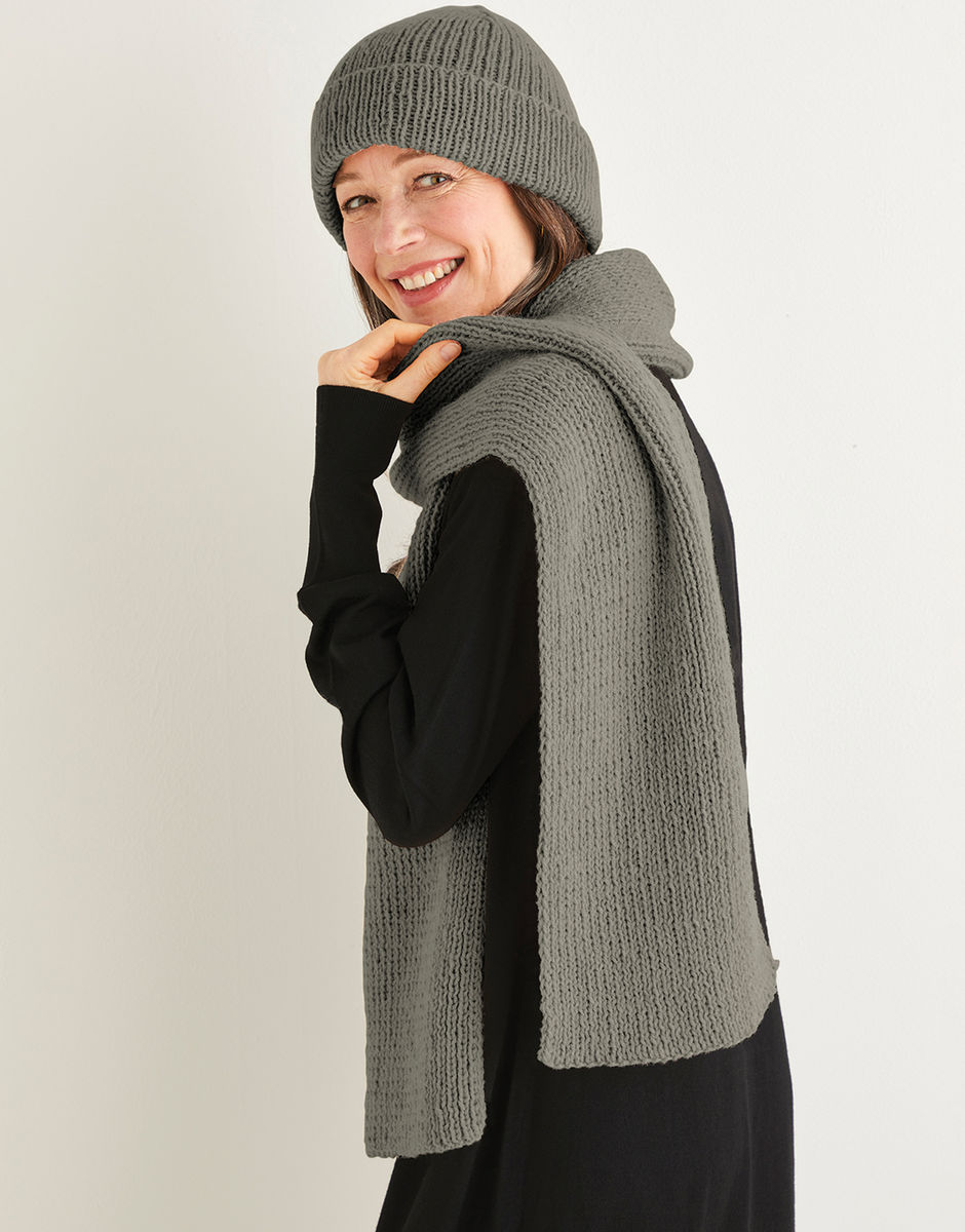 The alpaca in Sirdar Saltaire adds a luxurious softness to this hat and scarf set. Our timeless neutral palette means this set is bound to be one you reach...